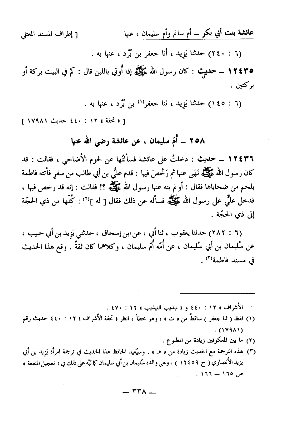 12435 -[ق] حديث كان رسول الله صَلَّى اللَّهُ عَلَيْهِ وَسَلَّمَ إذا أوتي باللبن قال كم في البيت بركة أو بركتين (6: 145) حدثنا يزيد ثنا جعفر بن برد عنها به
