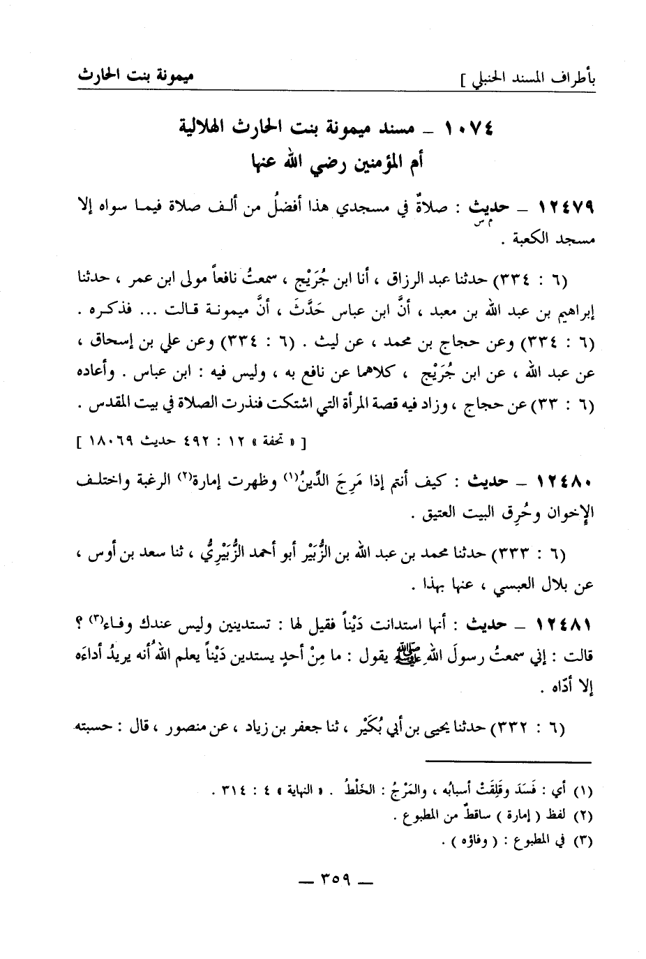 مسند ميمونة بنت الحارث الهلالية أم المؤمنين رضي الله عنها