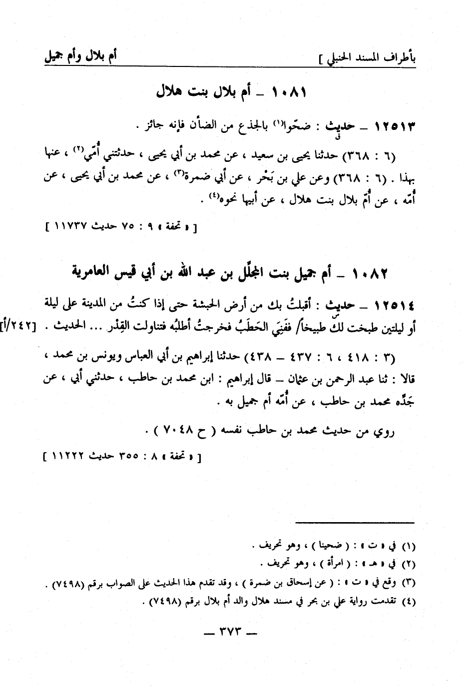 12515 -[س] حديث أقبلت بك من أرض الحبشة حتى إذا كنت من المدينة على ليلة أو ليلتين طبخت لك طبيخا ففني الحطب فخرجت أطلبه فتناولت القدر ... . الحديث (3: 418، 6: 437 - 438) حدثنا إبراهيم بن أبي العباس ويونس بن محمد قالا ثنا عبد الرحمن بن عثمان - قال إبراهيم ابن محمد بن حاطب حدثني أبي عن جده محمد بن حاطب عن أمه أم جميل به. روي من حديث محمد بن حاطب نفسه (ح 7048)