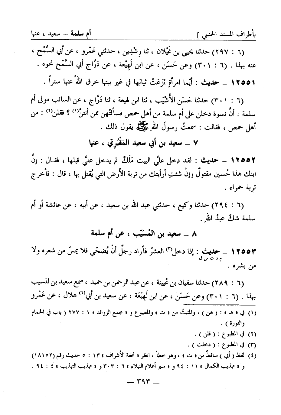 12554 -[م د ت س ق] حديث إذا دخل العشر فأراد رجل أن يضحي فلا يمس من شعره ولا من بشره (6: 289) حدثنا سفيان بن عيينة عن عبد الرحمن بن حميد سمع سعيد بن المسيب بهذا (6: 301) وعن حسن عن ابن لهيعة عن سعيد بن أبي هلال عن عمرو -[394]- بن مسلم الجندعي أخبرني ابن المسيب نحوه قال أحمد وقال محمد بن عمرو يعني ابن علقمة عن عمر بن مسلم بن عمار بن أكيمة (6: 311) وعن محمد بن جعفر عن شعبة عن مالك (6: 311) وعن إسماعيل بن محمد عن معاذ بن معاذ عن محمد بن عمرو كلاهما عن عمر بن مسلم بن عمار بن أكيمة به ولم يشك قال مالك في حديثه عن عمر أو عمرو بن مسلم وقال معاذ ... .