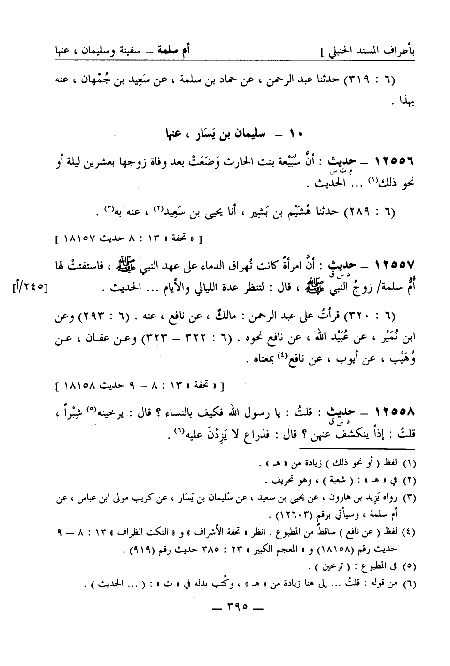 12558 -[د س ق] حديث أن امرأة كانت تهراق الدماء على عهد النبي صَلَّى اللَّهُ عَلَيْهِ وَسَلَّمَ فاستفتت لها أم سلمة زوج النبي صَلَّى اللَّهُ عَلَيْهِ وَسَلَّمَ قال لتنظر عدة الليالي والأيام ... . الحديث (6: 320) قرأت على عبد الرحمن مالك عن نافع عنه (6: 293) وعن ابن نمير عن عبيد الله عن نافع نحوه (6: 322 - 323) وعن عفان عن وهيب عن أيوب عن نافع بمعناه