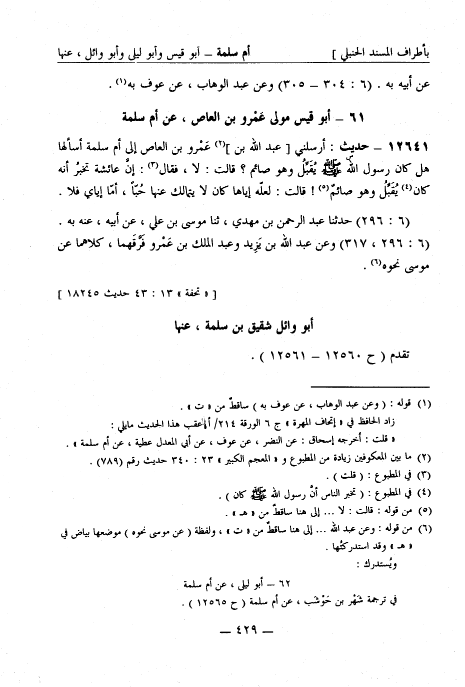 [تحفة 13: 43 حديث 18245] أبو وائل شقيق بن سلمة عنها تقدم (ح 12560 - 12561)