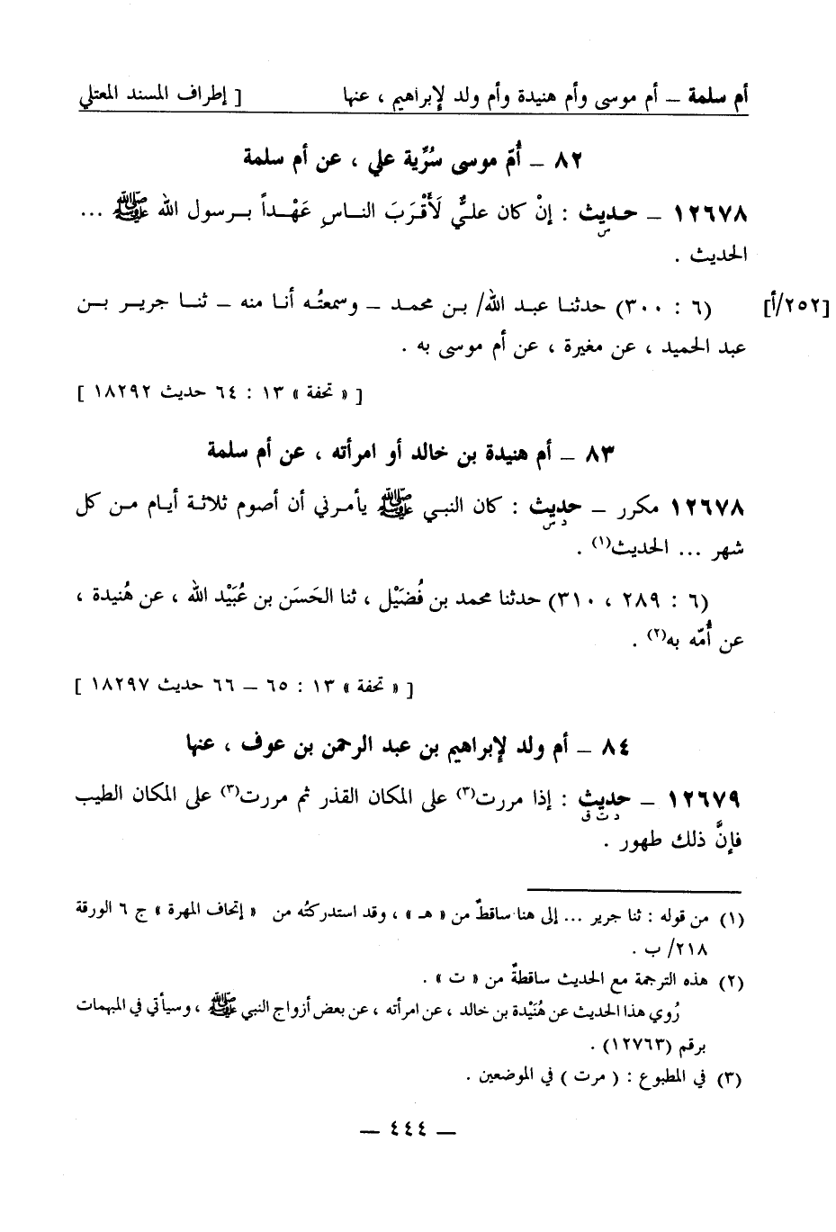 12678 -[س] حديث إن كان علي لأقرب الناس عهدا برسول الله صَلَّى اللَّهُ عَلَيْهِ وَسَلَّمَ ... الحديث (6: 300) حدثنا عبد الله بن محمد - وسمعته أنا منه - ثنا جرير بن عبد الحميد عن مغيرة عن أم موسى به