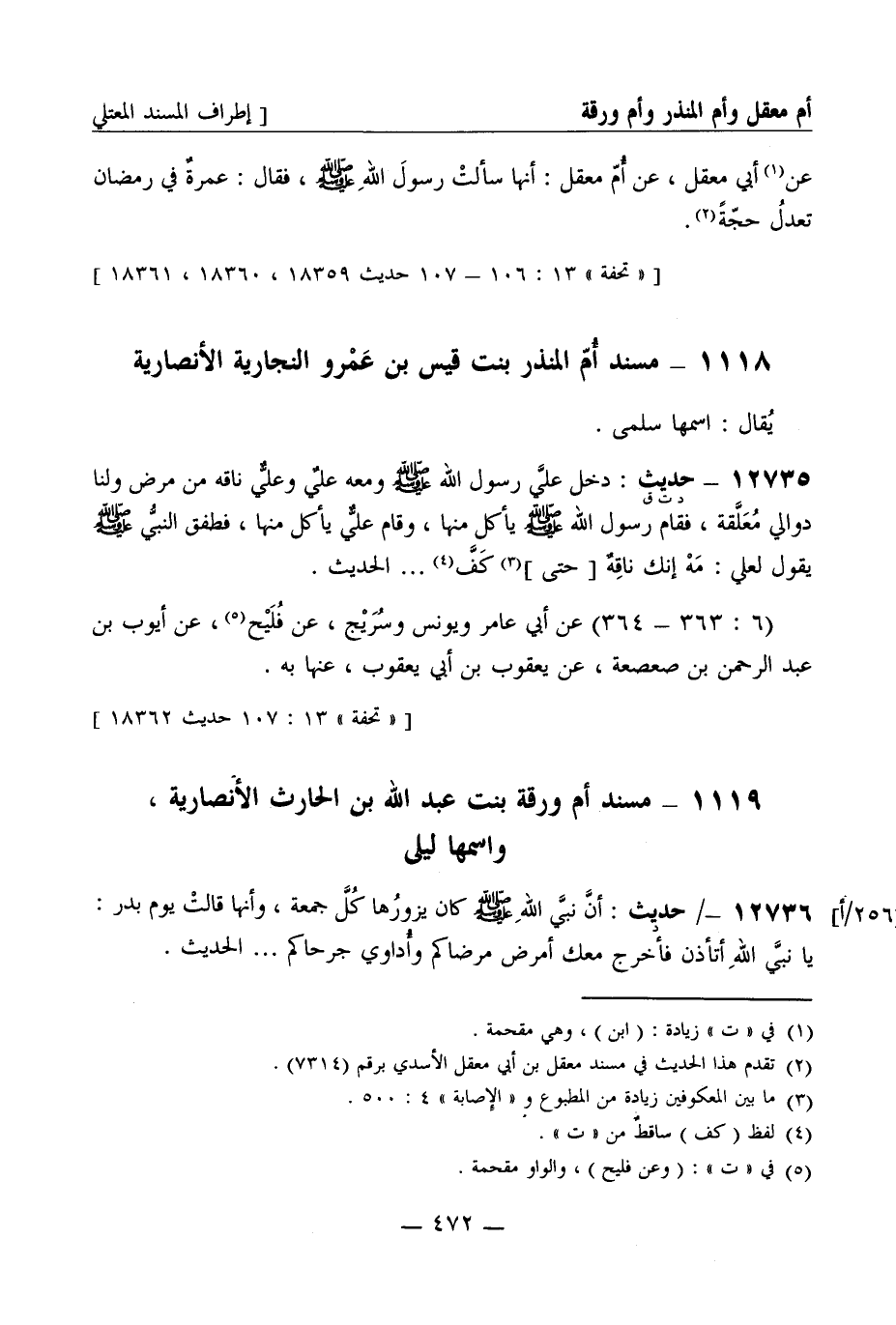 مسند أم ورقة بنت عبد الله بن الحارث الأنصارية واسمها ليلى