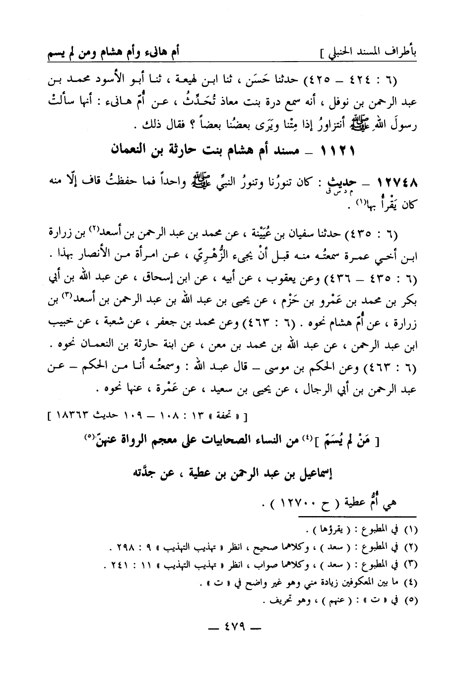[تحفة 13: 108 - 109 حديث 18363] [من لم يسم] من النساء الصحابيات على معجم الرواة عنهن إسماعيل بن عبد الرحمن بن عطية عن جدته هي أم عطية (ح 12700)