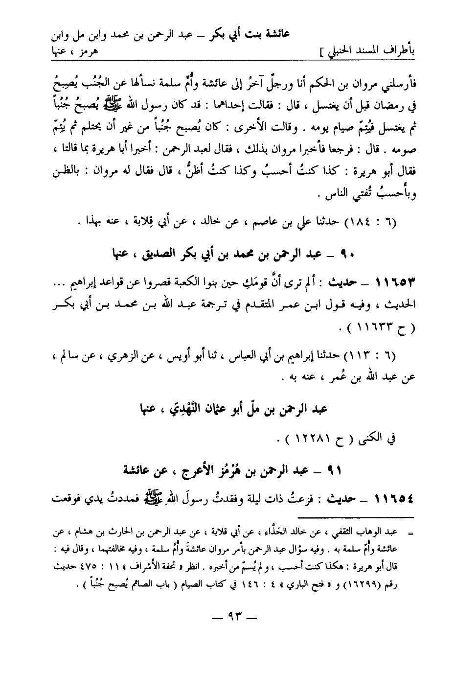 11653 - حديث ألم ترى أن قومك حين بنوا الكعبة قصروا عن قواعد إبراهيم ... . الحديث وفيه قول ابن عمر المتقدم في ترجمة عبد الله بن محمد بن أبي بكر (ح 11633) (6: 113) حدثنا إبراهيم بن أبي العباس، ثنا أبو أويس، عن الزهري عن سالم عن عبد الله بن عمر، عنه به. عبد الرحمن بن مل أبو عثمان النهدي، عنها في الكنى (ح 12281) .
