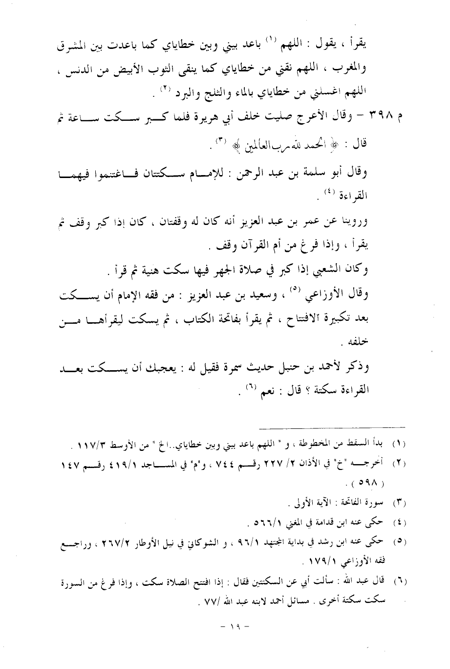 قال مُعِدُّ الكتاب للشاملة: ونص الكلام في الأوسط كما يلي: «أَنَّ رَسُولَ اللهِ صَلَّى اللَّهُ عَلَيْهِ وَسَلَّمَ: كَانَ إِذَا كَبَّرَ فِي الصَّلَاةِ سَكَتَ هُنَيَّةً قَبْلَ أَنْ يَقْرَأَ، فَقُلْتُ: بِأَبِي وَأُمِّي مَا تَقُولُ فِي سَكْتَتِكَ بَيْنَ التَّكْبِيرِ وَالْقِرَاءَةِ؟، قَالَ: أَقُولُ «اللهُمَّ بَاعِدْ بَيْنِي وَبَيْنَ خَطَايَايَ كَمَا بَاعَدْتَ بَيْنَ الْمَشْرِقِ وَالْمَغْرِبِ، اللهُمَّ نَقِّنِي مِنْ خَطَايَايَ كَمَا يُنَقَّى الثَّوْبُ الْأَبْيَضُ مِنَ الدَّنَسِ، اللهُمَّ اغْسِلْنِي مِنْ خَطَايَايَ بِالْمَاءِ، وَالثَّلْجِ وَالْبَرَدِ»