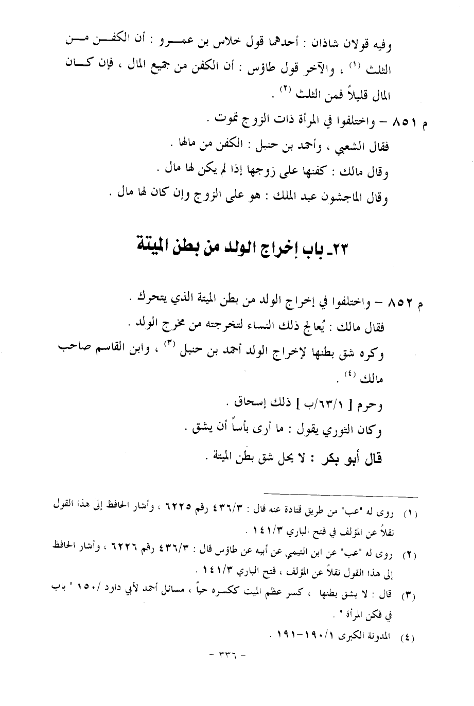 م 851 - واختلفوا في المرأة ذات الزوج تموت.