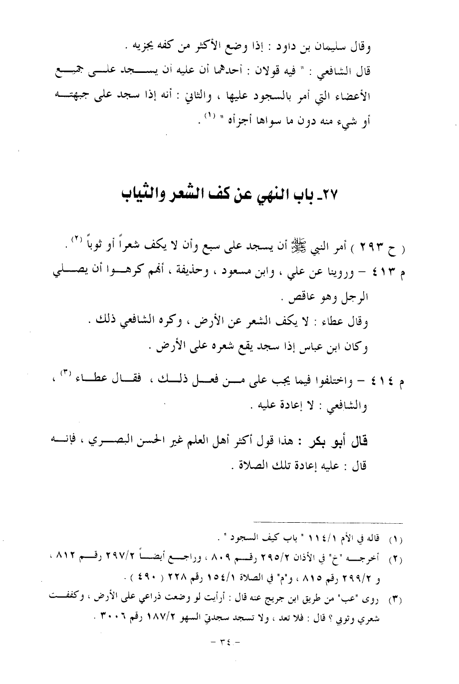 27 - باب النهي عن كف الشعر والثياب