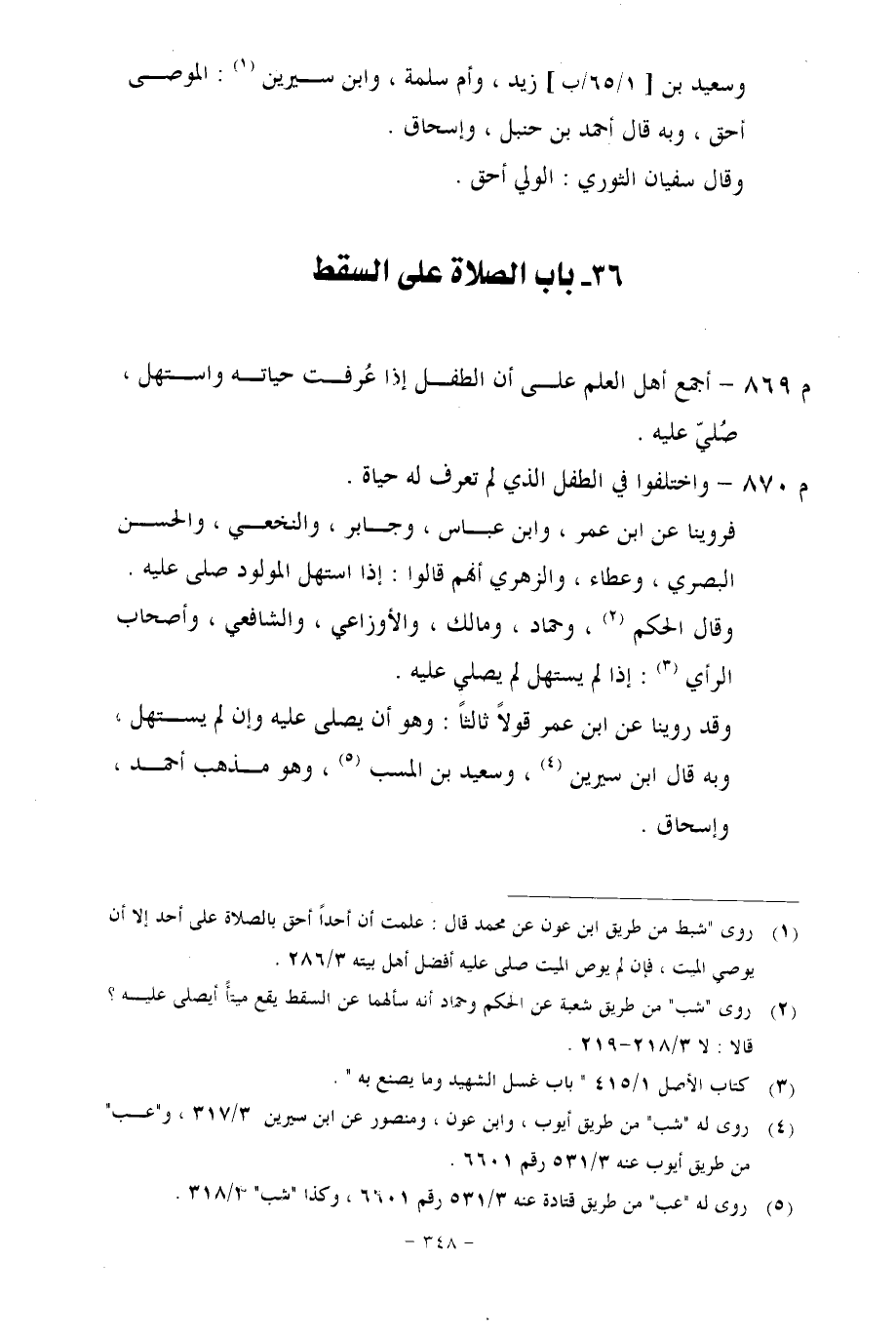 م 870 - واختلفوا في الطفل الذي لم تعرف له حياة.
