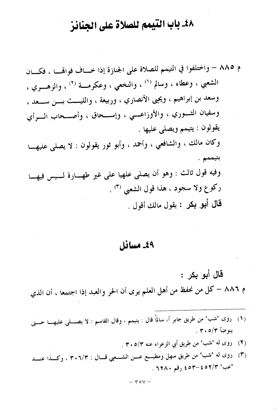 م 885 - واختلفوا في التيمم للصلاة على الجنازة إذا خاف فواتها، فكان الشعبي، وعطاء، وسالم، والنخعي، وعكرمة، والزهري، وسعد بن إبراهيم، ويحيى الأنصاري، وربيعة، والليث بن سعد، وسفيان الثوري، والأوزاعي، وإسحاق، وأصحاب الرأي يقولون: يتيمم ويصلى عليها.