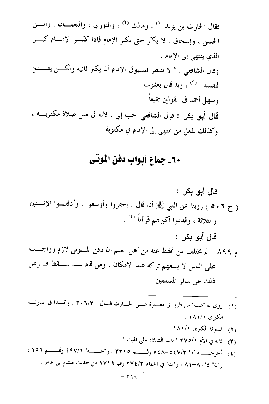 م 899 - لم يختلف من نحفظ عنه من أهل العلم أن دفن الموتى لازم وواجب على الناس لا يسعهم تركه عند الإمكان، ومن قام به سقط فرض ذلك عن سائر المسلمين.