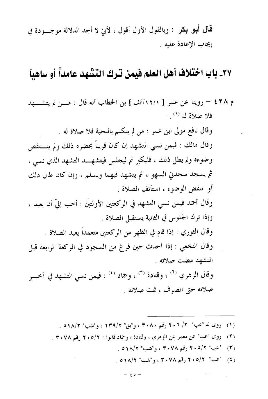 37 - باب اختلاف أهل العلم فيمن ترك التشهد عامداً أو ساهياً