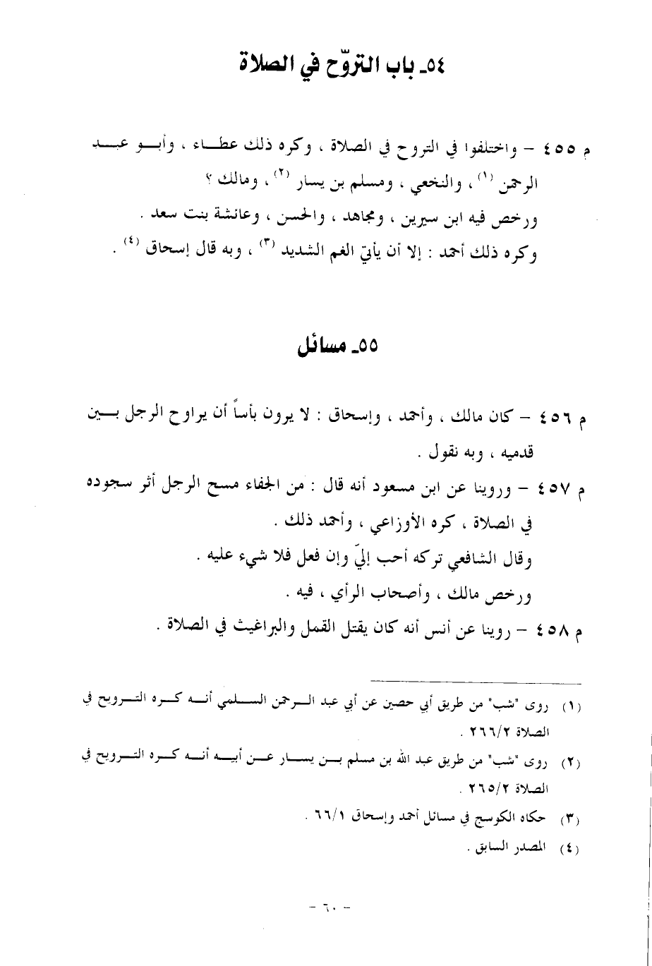 م 455 - واختلفوا في التروح في الصلاة، وكره ذلك عطاء، وأبو عبد الرحمن، والنخعي، ومسلم بن يسار، ومالك؟
