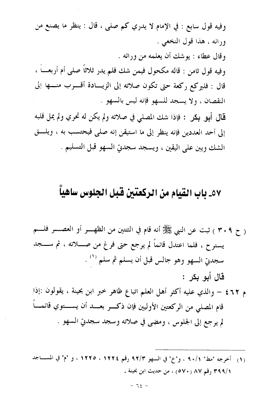 [57 - باب القيام من الركعتين قبل الجلوس ساهيا]
