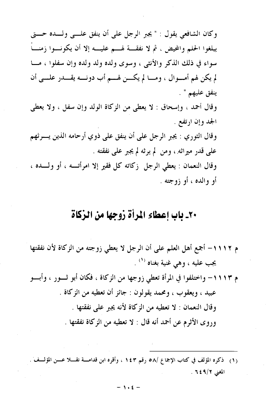 م 1113 - واختلفوا في المرأة تعطي زوجها من الزكاة، فكان أبو ثور، وأبو عبيد، ويعقوب، ومحمد يقولون: جائز أن تعطيه من الزكاة.