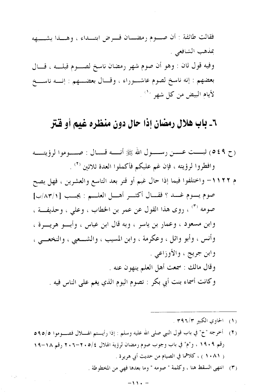 [6 - باب هلال رمضان إذا حال دون منظره غيم أو قتر]