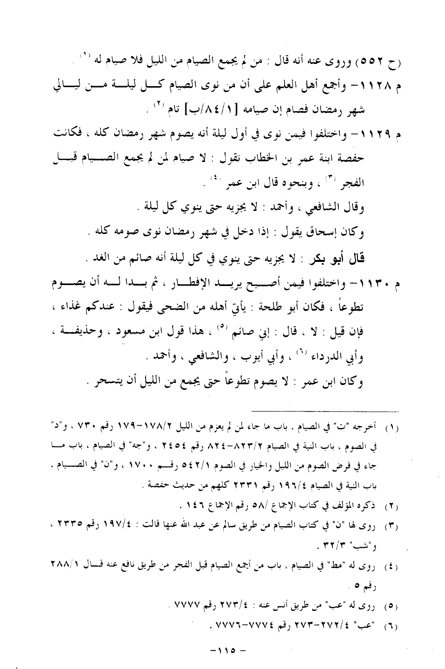 م 1128 - وأجمع أهل العلم على أن من نوى الصيام كل ليلة من ليالي شهر رمضان فصام إن صيامه [1/ 84/ب] تام.