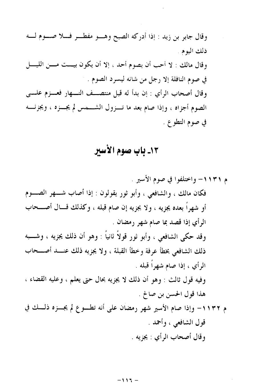 م 1132 - وإذا صام الأسير شهر رمضان على أنه تطوع لم يجزه ذلك في قول الشافعي، وأحمد.