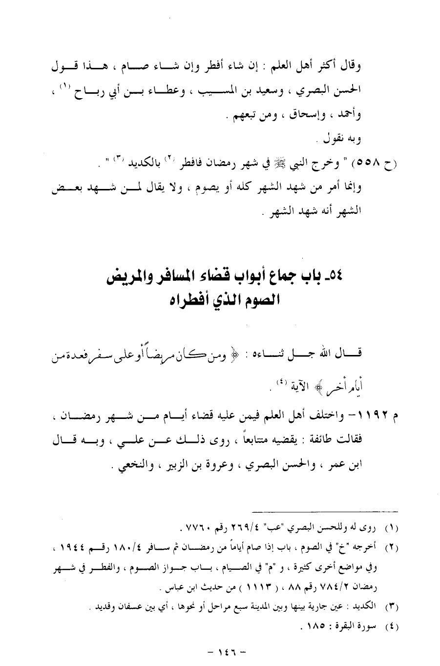 54 - باب جماع أبواب قضاء المسافر والمريض الصوم الذي أفطراه