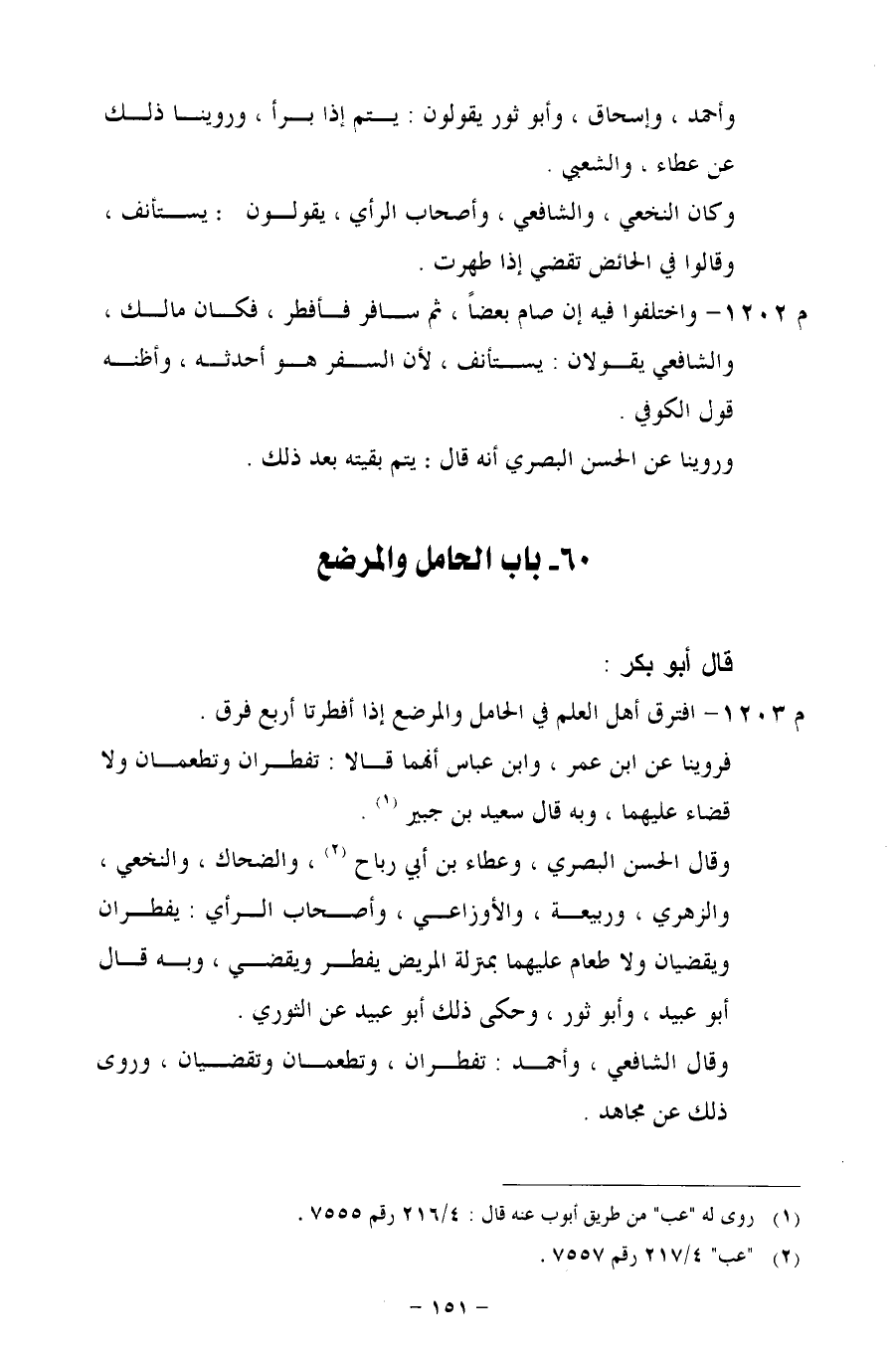 م 1203 - افترق أهل العلم في الحامل والمرضع إذا أفطرتا أربع فرق.