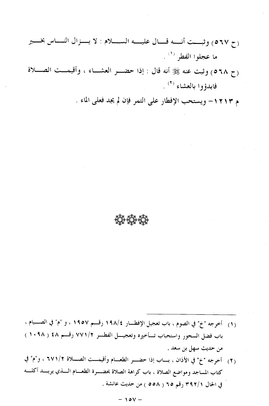(ح 567) وثبت أنه قال عليه السلام: لا يزال الناس بخير ما عجلوا الفطر.