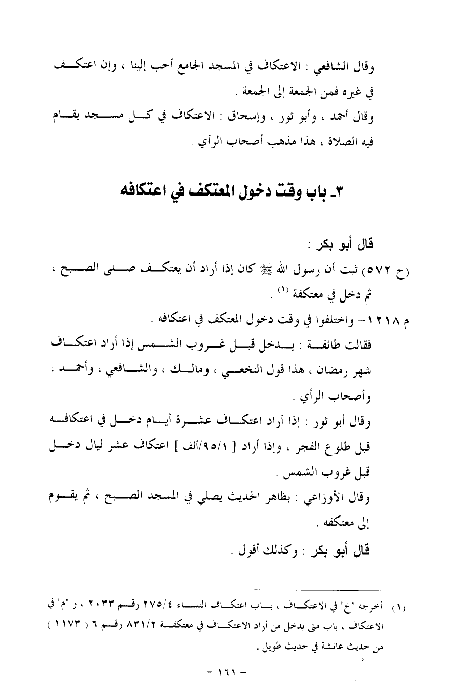(ح 572) ثبت أن رسول الله- صلى الله عليه وسلم - كان إذا أراد أن يعتكف صلى الصبح، ثم دخل في معتكفة.