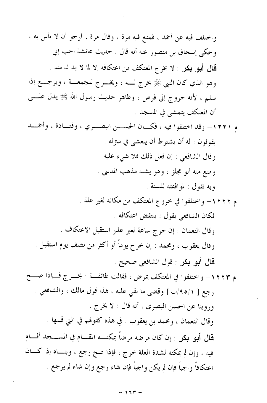 م 1222 - واختلفوا في خروج المعتكف من مكانه لغير علة.