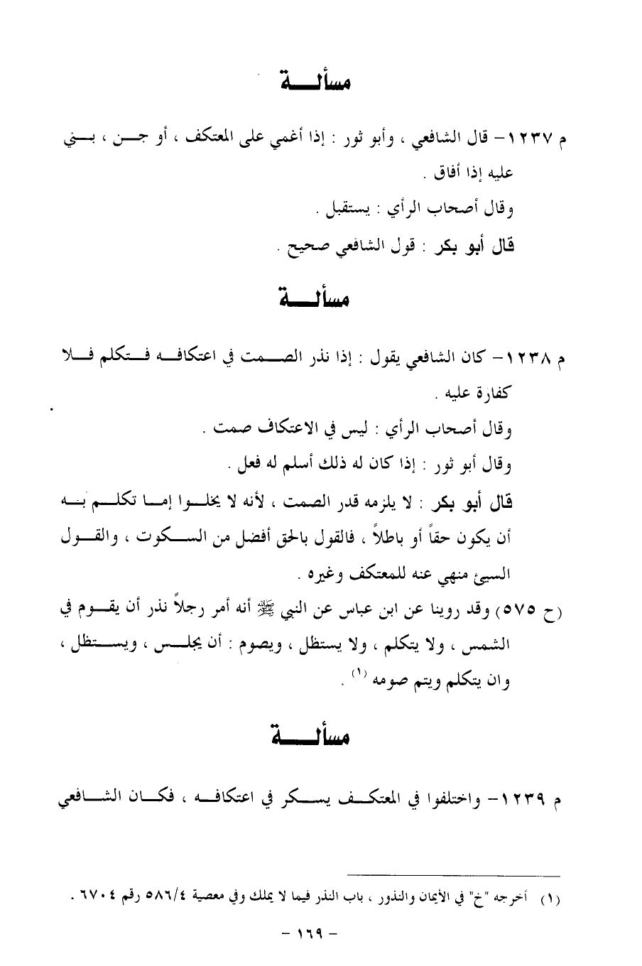 م 1239 - واختلفوا في المعتكف يسكر في اعتكافه، فكان الشافعي