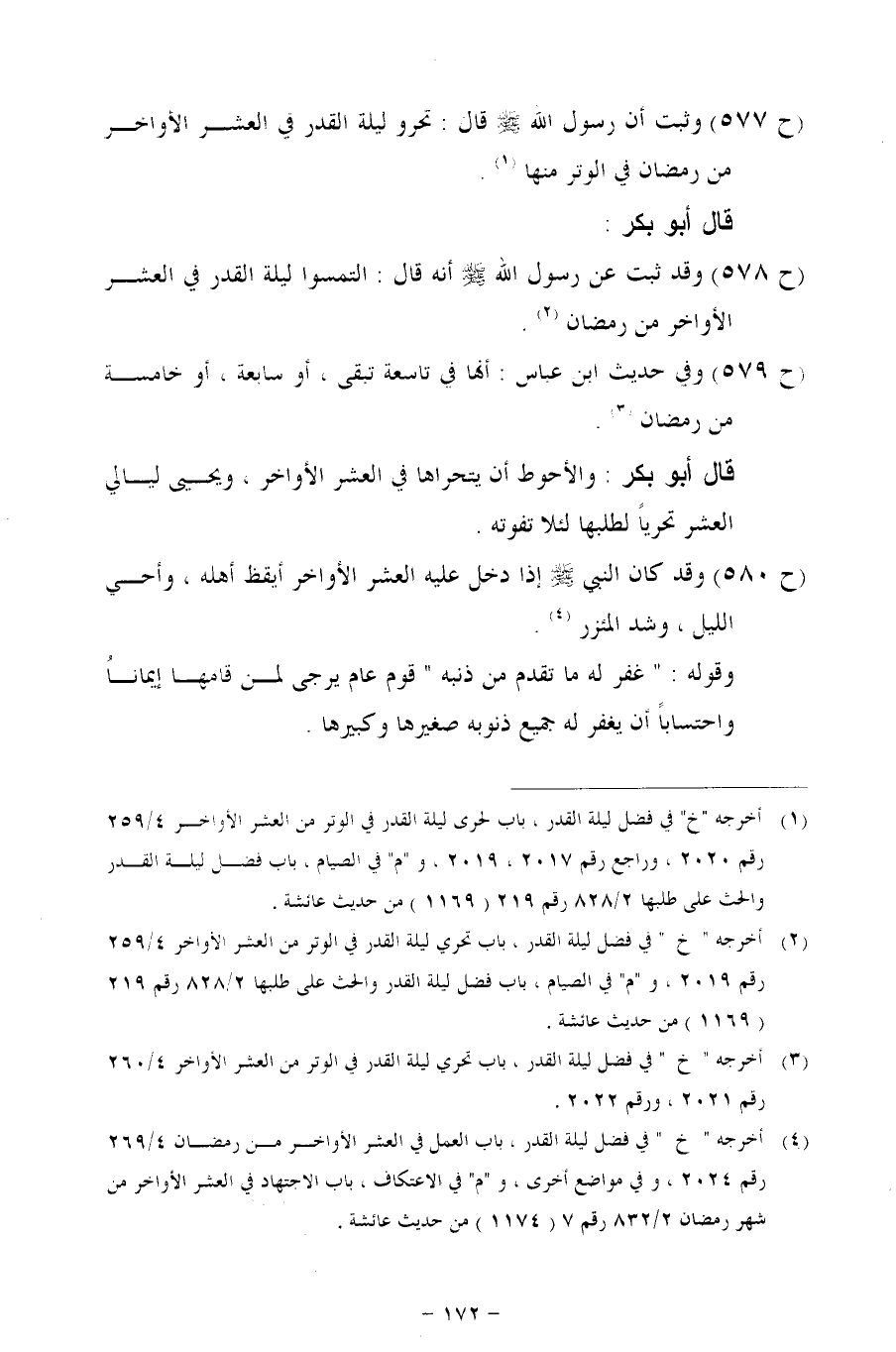 (ح 578) وقد ثبت عن رسول الله- صلى الله عليه وسلم - أنه قال: التمسوا ليلة القدر في العشر الأواخر من رمضان.