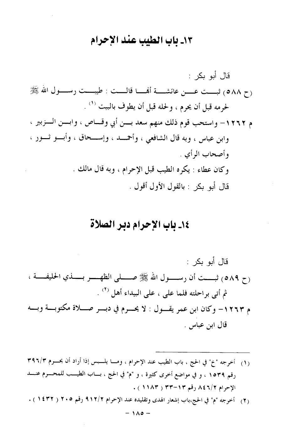 م 1263 - وكان ابن عمر يقول: لا يحرم في دبر صلاة مكتوبة وبه قال ابن عباس.