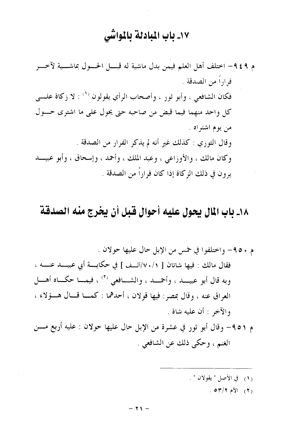 18 - باب المال يحول عليه أحوال قبل أن يخرج منه الصدقة م 950 - واختلفوا في خمس من الإبل حال عليها حولان.