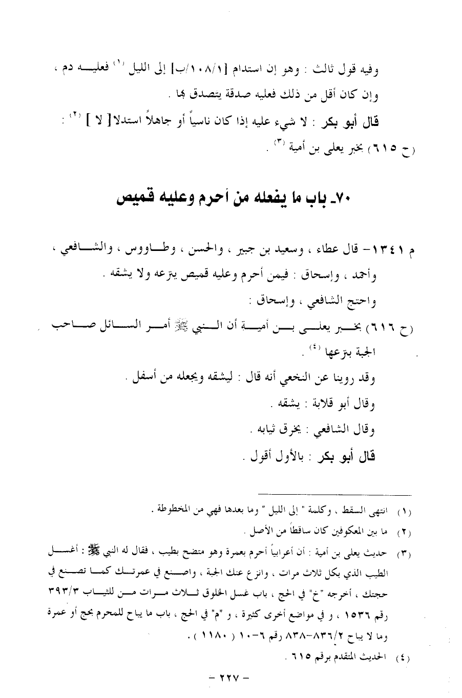 (ح 616) بخبر يعلى بن أمية أن النبي - صلى الله عليه وسلم - أمر السائل صاحب الجبة بنزعها.
