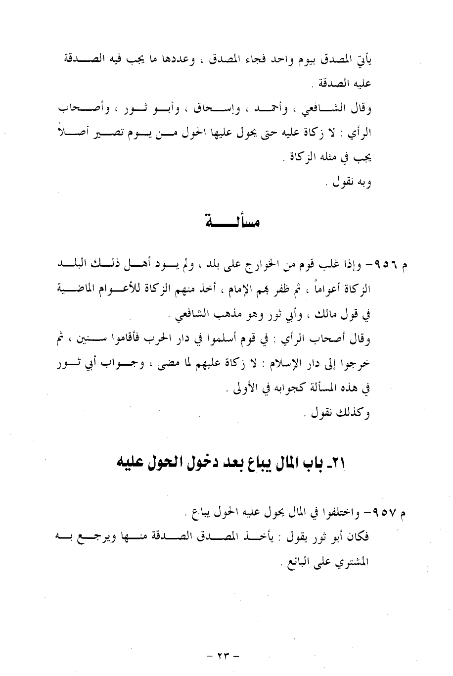 م 957 - واختلفوا في المال يحول عليه الحول يباع.
