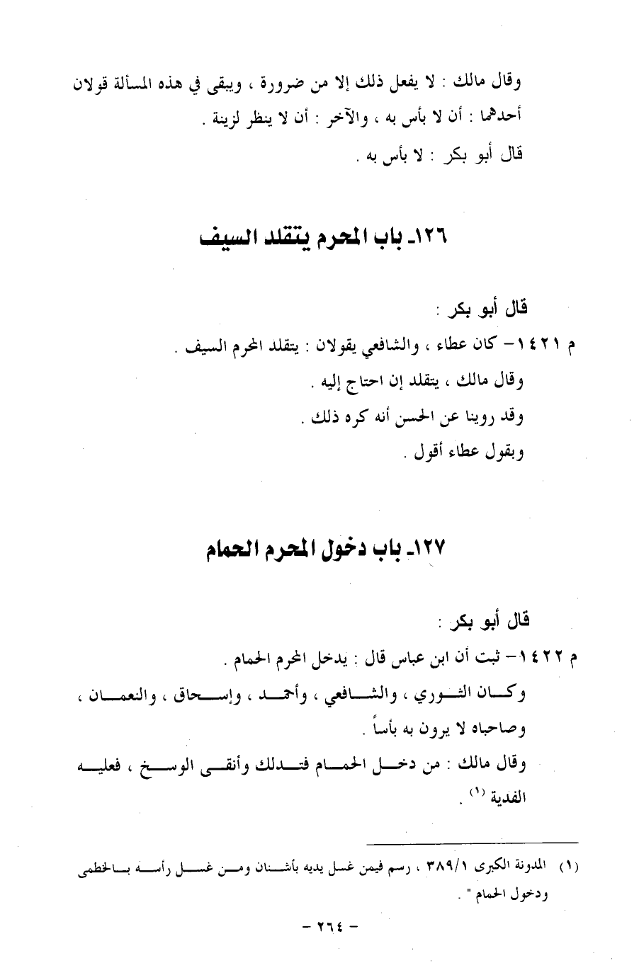 م 1422 - ثبت أن ابن عباس قال: يدخل المحرم الحمام.