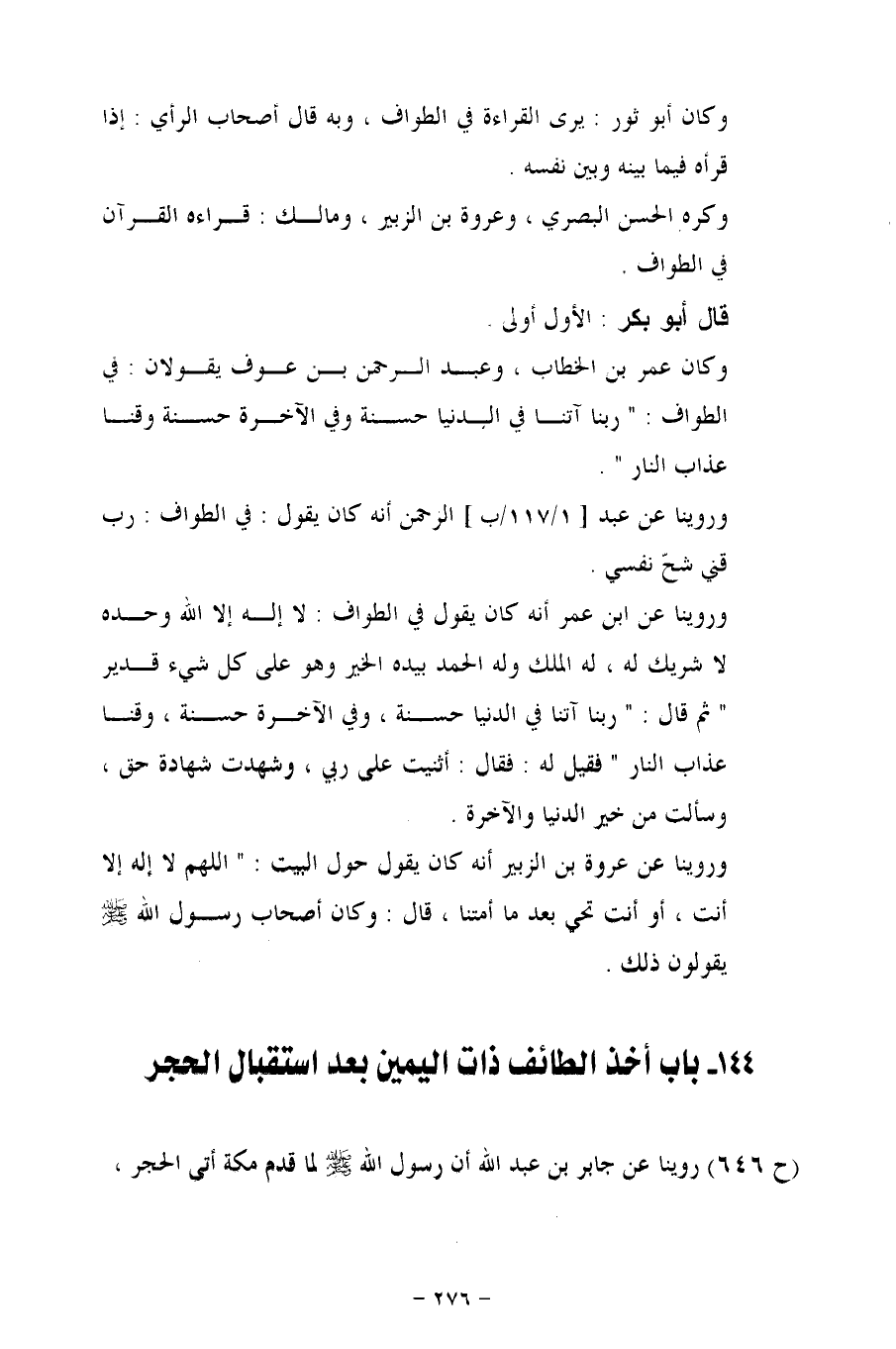 144 - باب أخذ الطائف ذات اليمين بعد استقبال الحجر