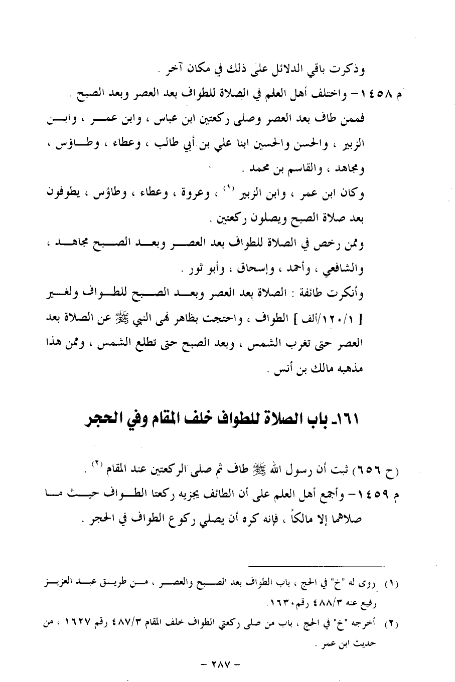 161 - باب الصلاة للطواف خلف المقام وفي الحجر