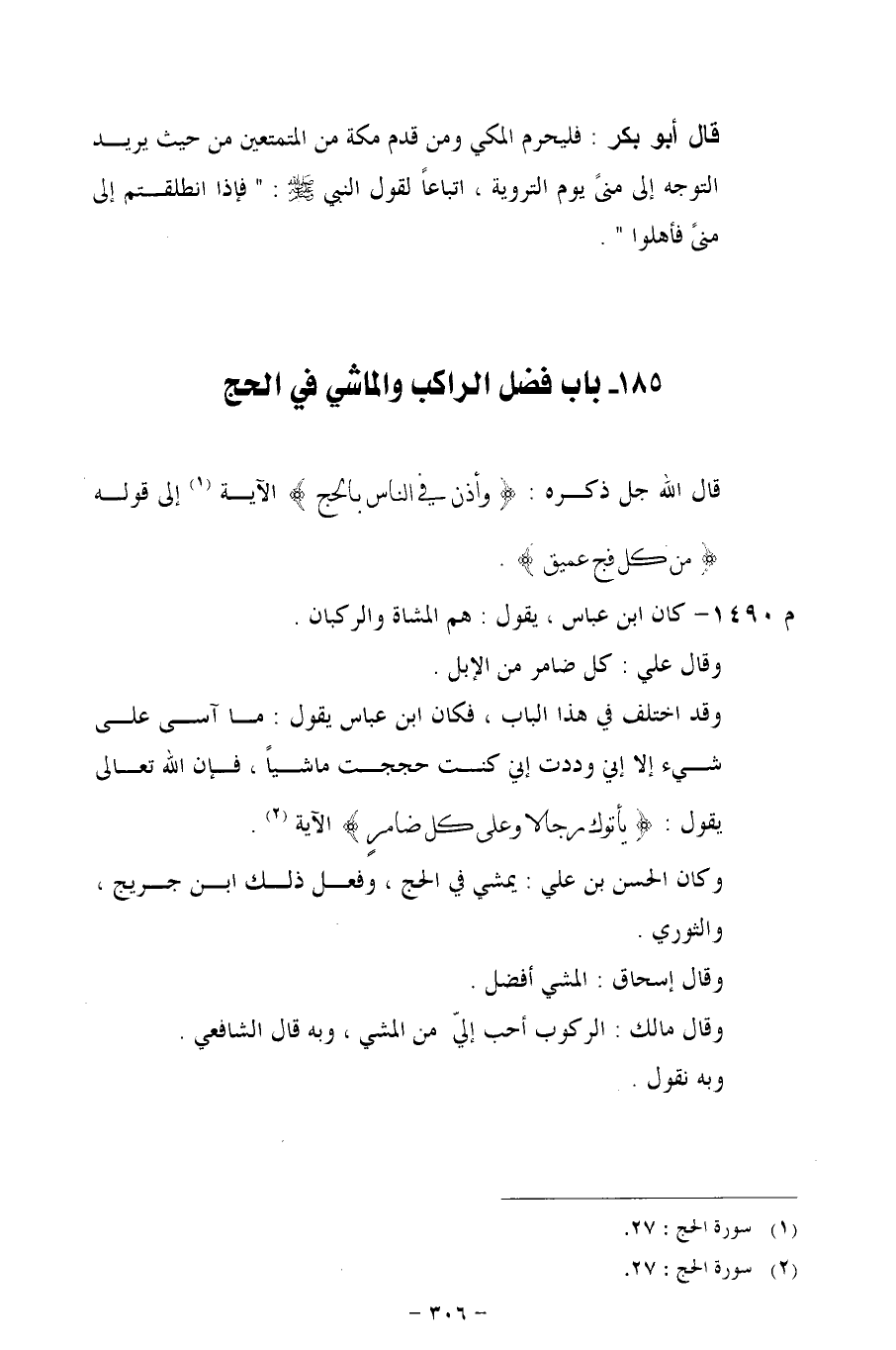 م 1490 - كان ابن عباس، يقول: هم المشاة والركبان.