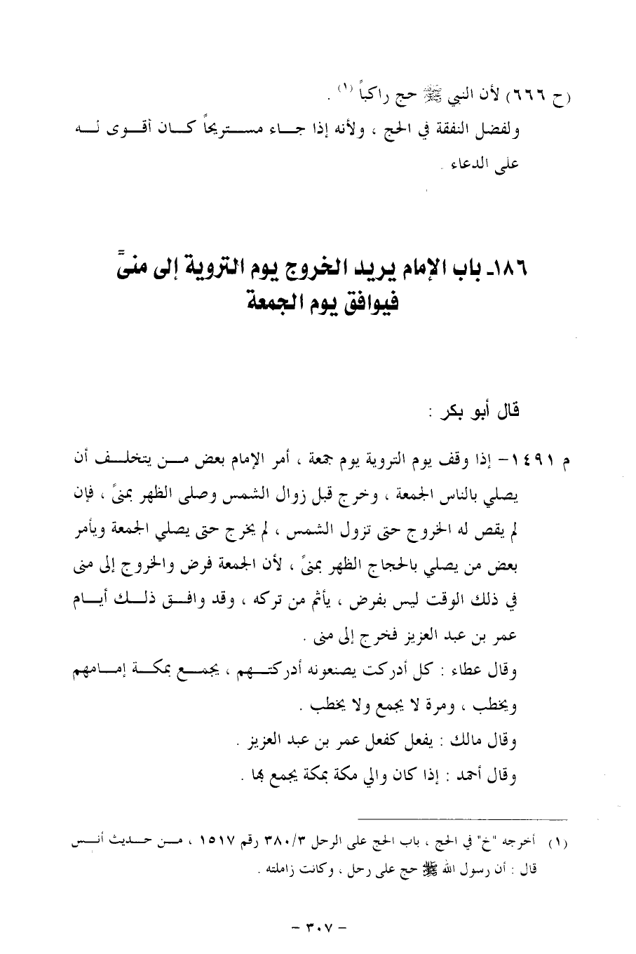 186 - باب الإمام يريد الخروج يوم التروية إلى منيً فيوافق يوم الجمعة