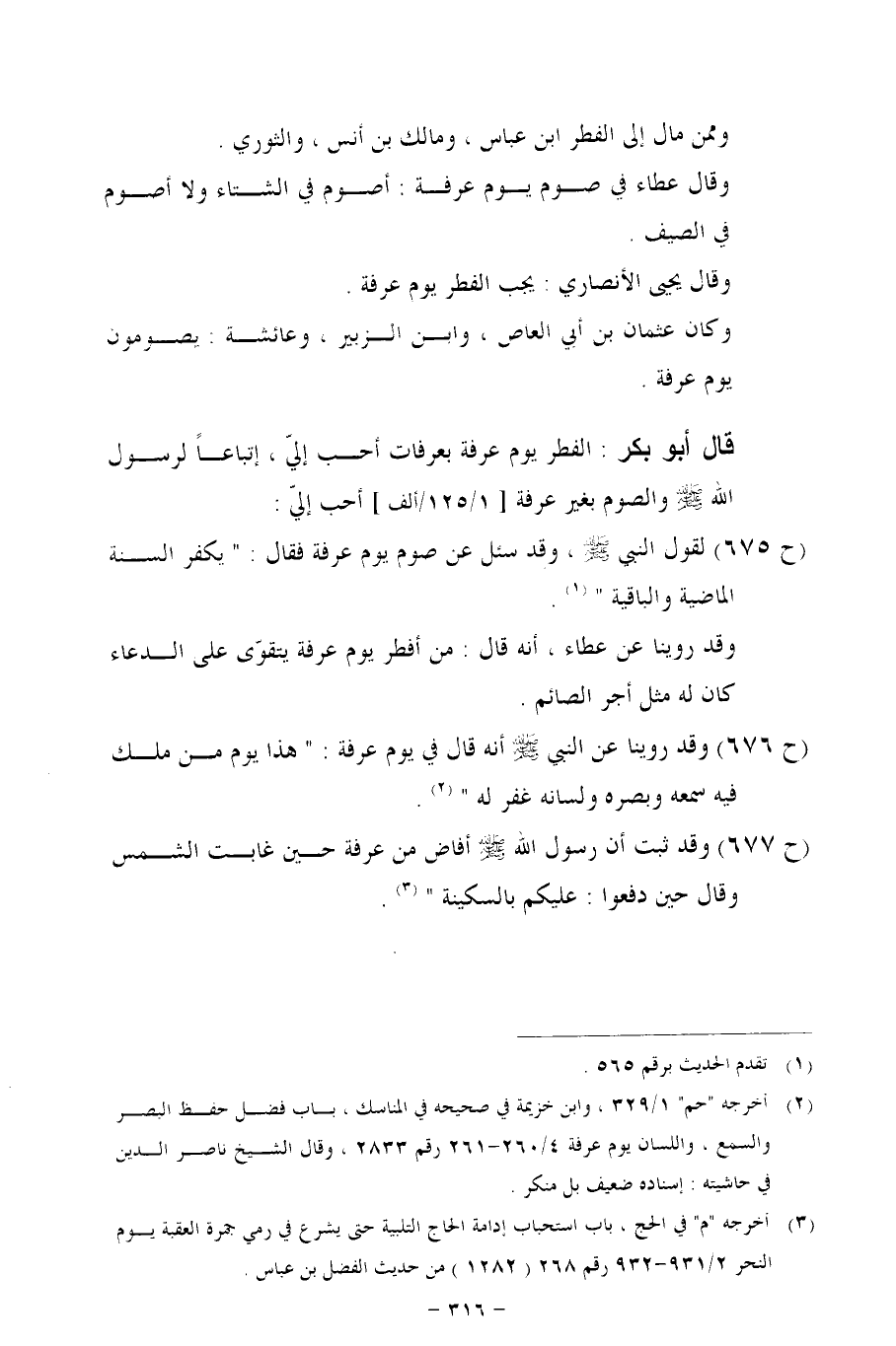 (ح 676) وقد روينا عن النبي - صلى الله عليه وسلم - أنه قال في يوم عرفة: "هذا يوم من ملك