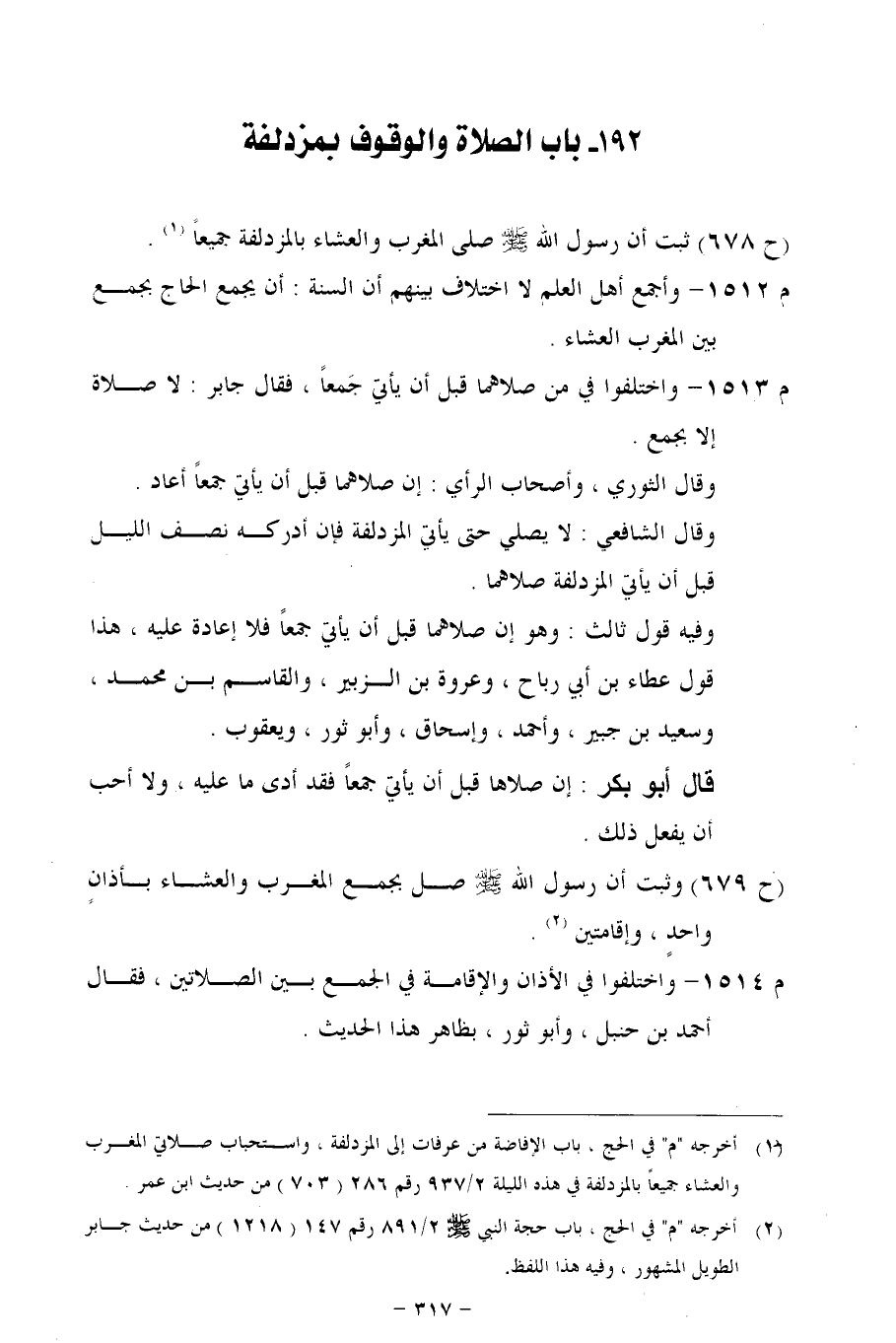 م 1512 - وأجمع أهل العلم لا اختلاف بينهم أن السنة: أن يجمع الحاج بجمع بين المغرب العشاء.