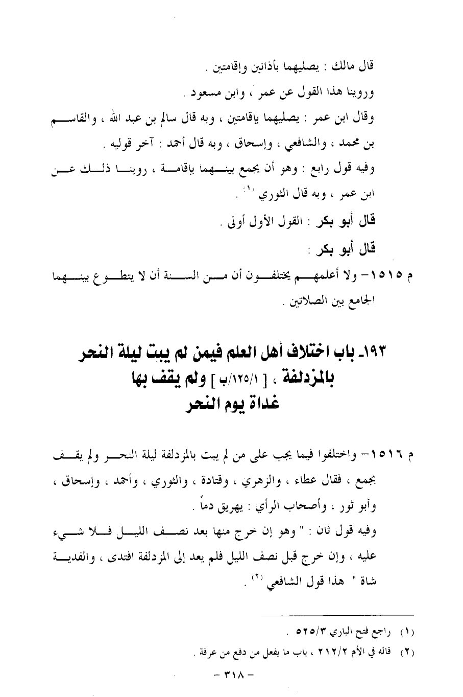 193 - باب اختلاف أهل العلم فيمن لم يبت ليلة النحر بالمزدلفة، [1/ 125/ب] ولم يقف بها غداة يوم النحر