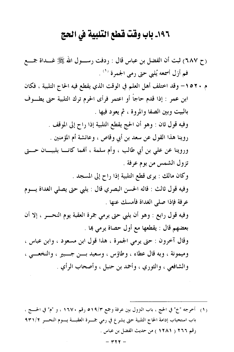(ح 687) ثبت أن الفضل بن عباس قال: ردفت رسول الله- صلى الله عليه وسلم -غداة جمع فم أزل أسمعه يُلبى حتى رمى الجمرة.