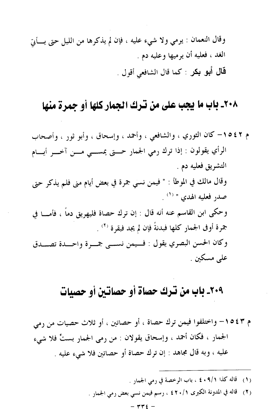 209 - باب من ترك حصاة أو حصاتين أو حصيات