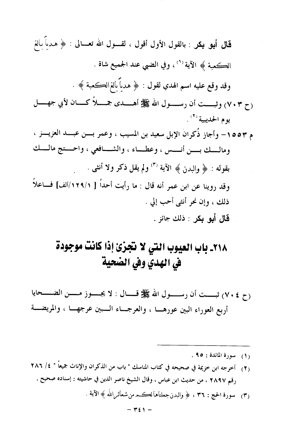 218 - باب العيوب التي لا تجزئ إذا كانت موجودة في الهدي وفي الضحية