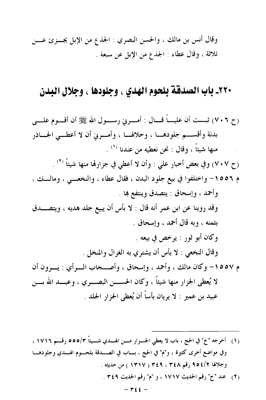 220 - باب الصدقة بلحوم الهدي، وجلودها، وجلال البدن