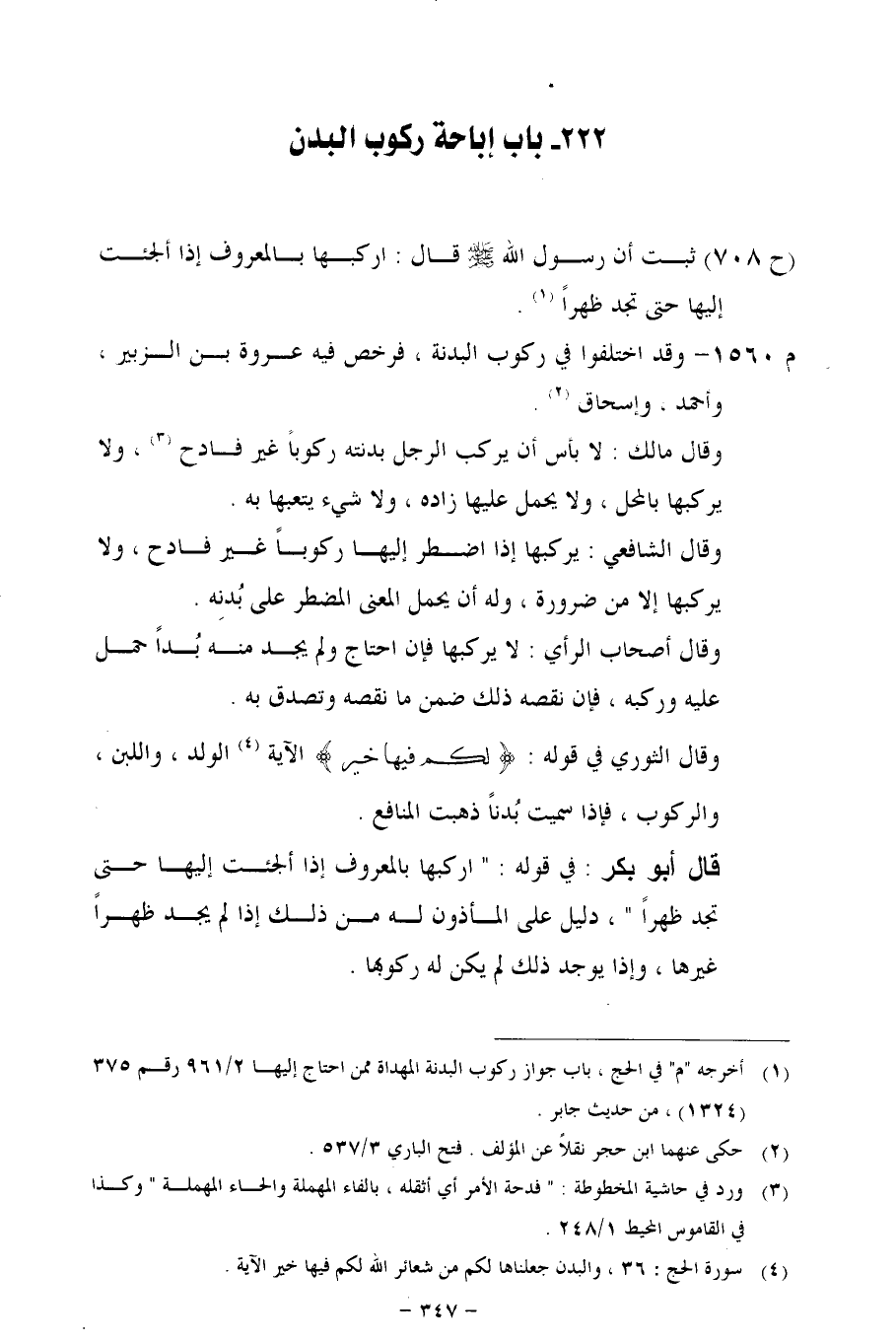 م 1560 - وقد اختلفوا في ركوب البدنة، فرخص فيه عروة بن الزبير، وأحمد، وإسحاق.