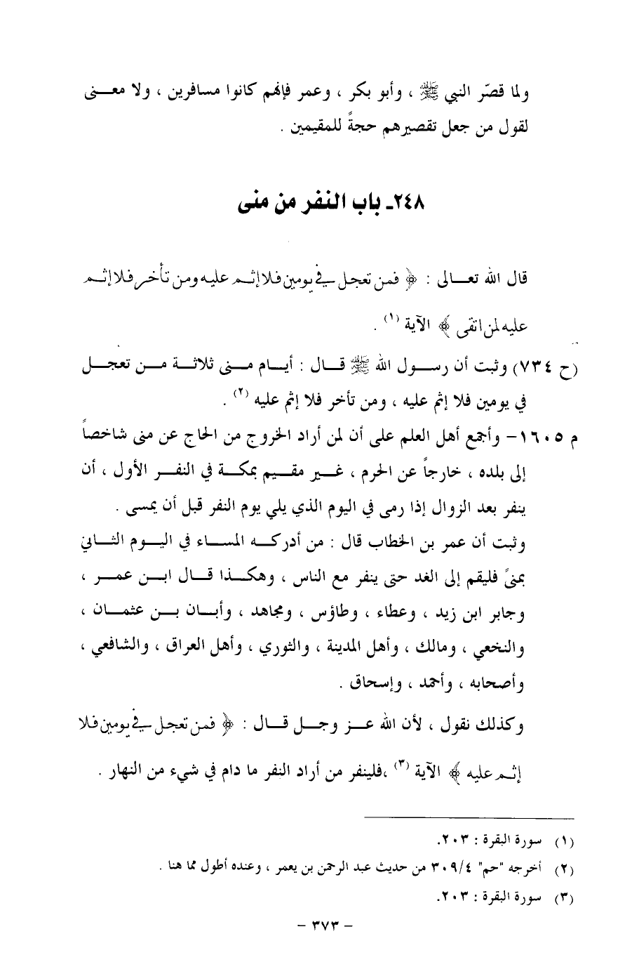 (ح 734) وثبت أن رسول الله- صلى الله عليه وسلم - قال: أيام مني ثلاثة من تعجل في يومين فلا إثم عليه، ومن تأخر فلا إثم عليه.