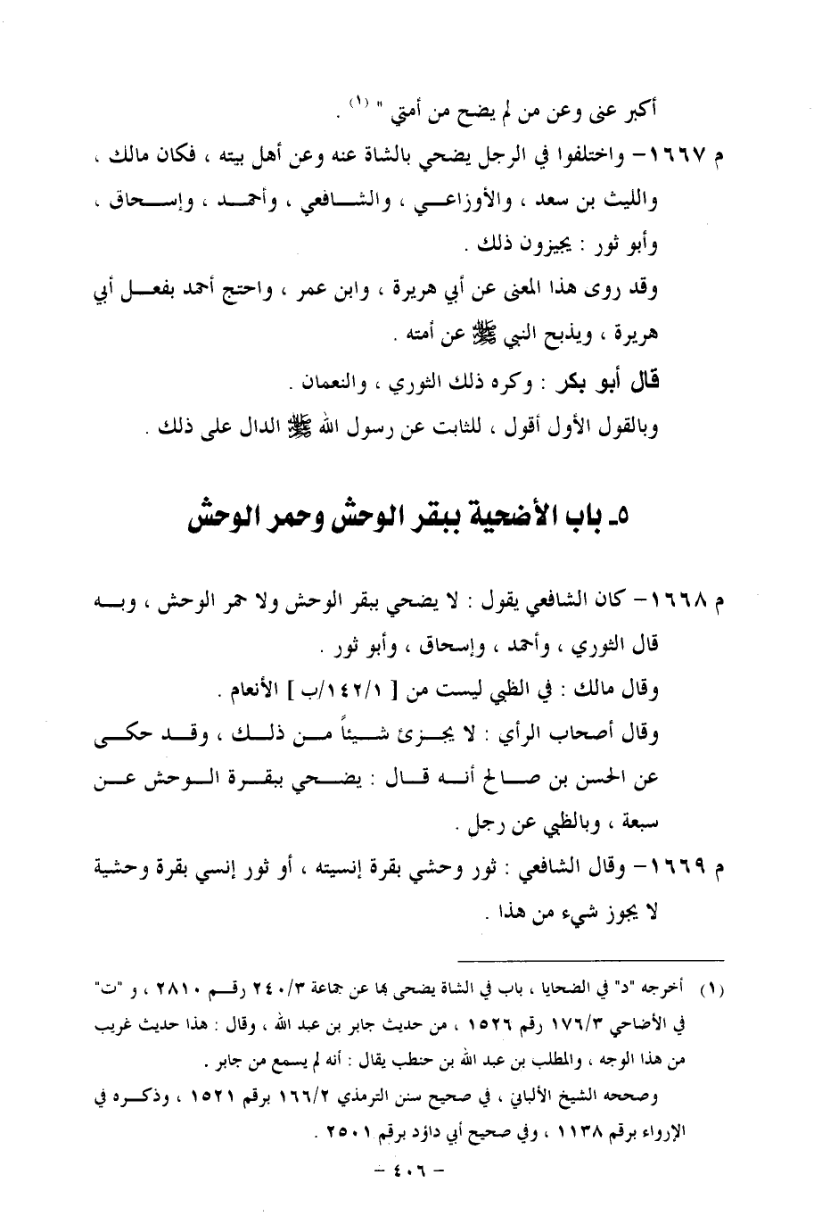 م 1668 - كان الشافعي يقول: لا يضحي ببقر الوحش ولا حمر الوحش، وبه قال الثوري، وأحمد، وإسحاق، وأبو ثور.
