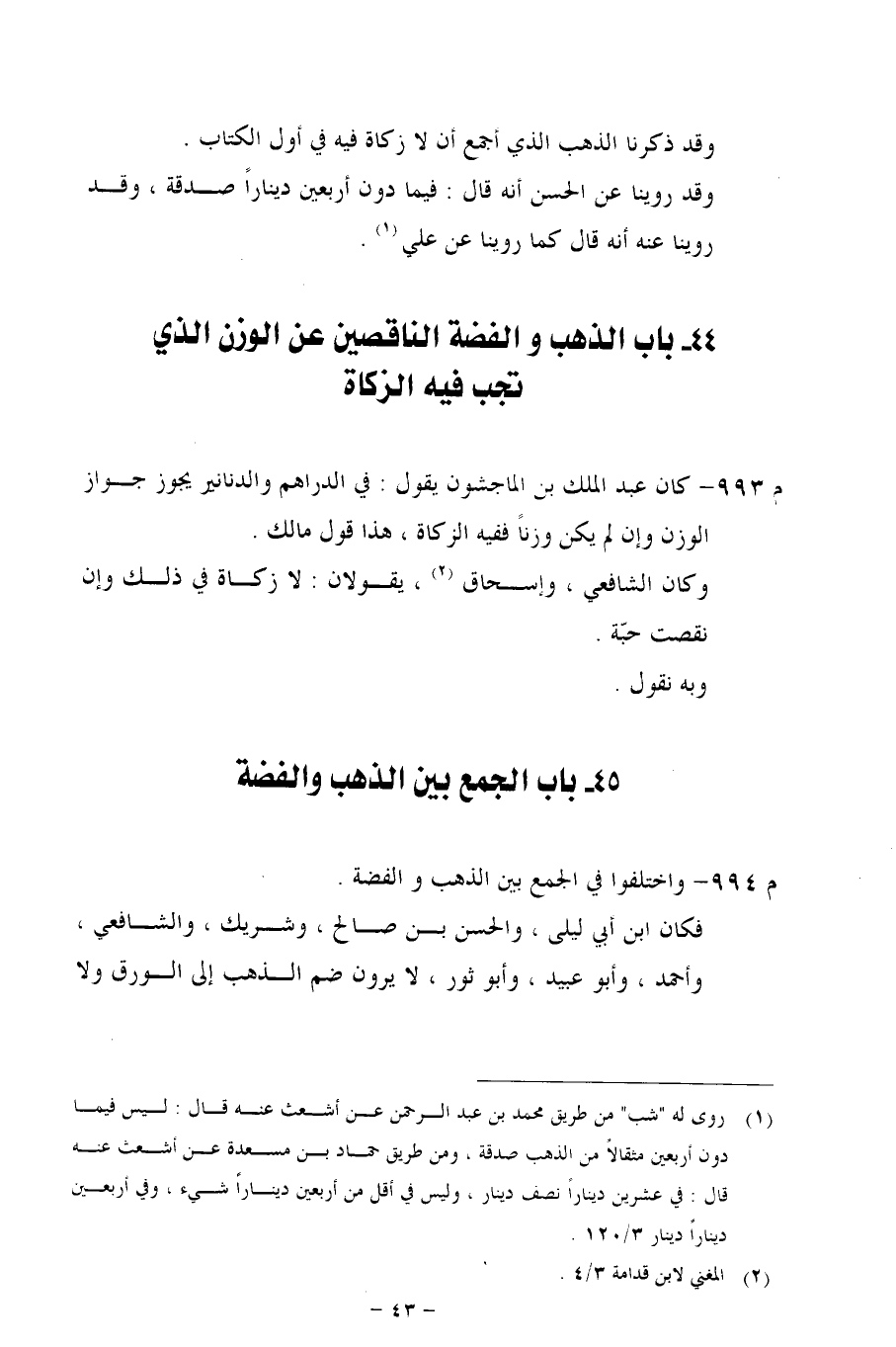 44 - باب الذهب والفضة الناقصين عن الوزن الذي